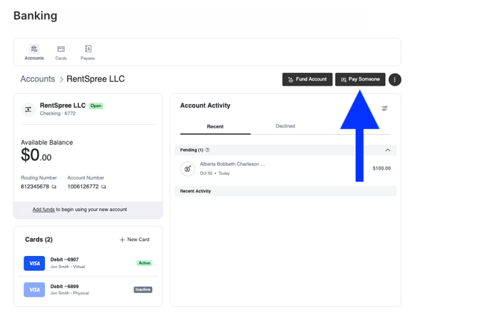 After creating a RentSpree Money account, funds can be deposited into a RentSpree Money account and payments can be sent to other external accounts.