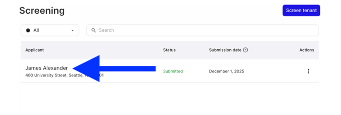 1. Once you log into your RentSpree Dashboard, select a submitted rental application that you would like to initiate a reference check for
