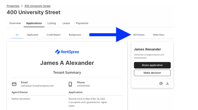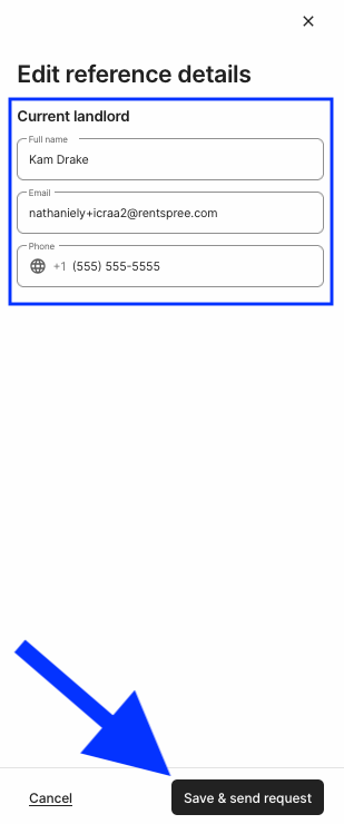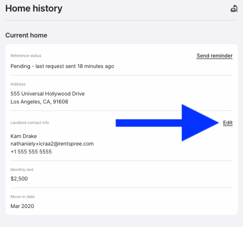 If an applicant asks a property representative to update a reference's contact information on a completed application, the representative can make those edits directly from their RentSpree Dashboard.