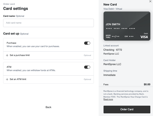 - For physical cards, once the card has been received and delivered, please activate the card from your RentSpree dashboard