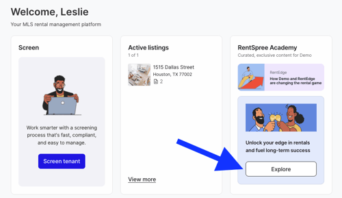 1. On your RentSpree dashboard, click Explore under the RentSpree Academy section or go to https://academy.rentspree.com/