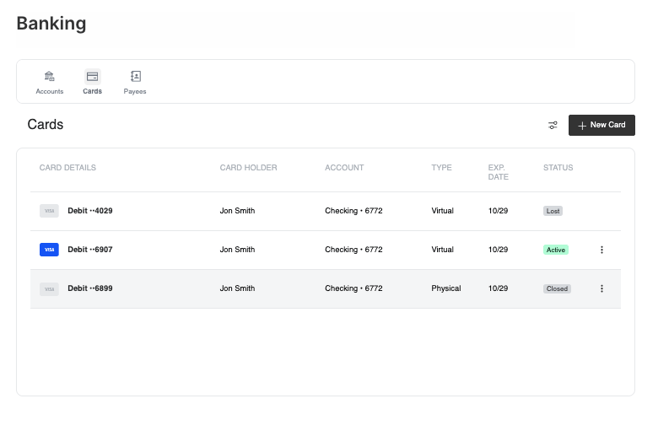 - Ensure Your Card has not been Closed: Under the Cards section, ensure the card has not been previously Closed or reported as Lost or Stolen