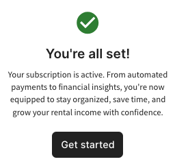 Once your subscription is active, a pop-up will confirm your subscription status, and you’ll receive a welcome email for Landlord PRO