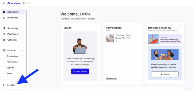 Once logged into your RentSpree account associated with a MLS that has RentSpree, click Insights