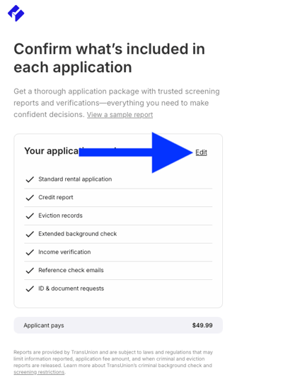 4. Once on the Confirm what’s included in each application page, select the Edit button