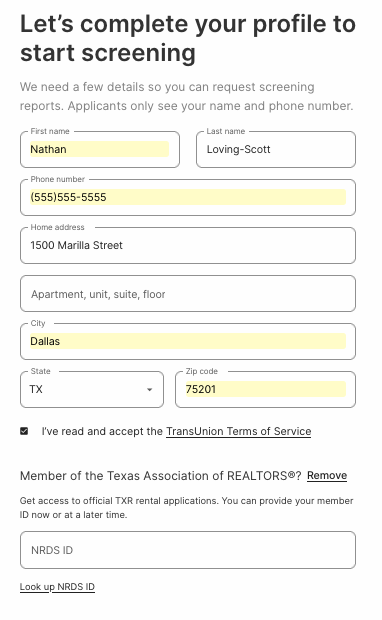 The Texas REALTORS® rental application form can be sent directly to an applicant as a request through RentSpree.